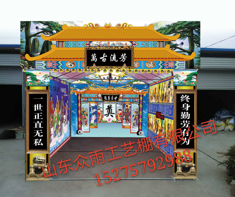 以上就是為大家介紹的關(guān)于選購白事靈棚的幾個建議,白事靈棚是祭奠逝者的重要場地,它的選購是很重要的。我們公司白事靈棚產(chǎn)品齊全,風(fēng)格有古代風(fēng)格,彩繪故事,現(xiàn)代風(fēng)格,豪華靈棚等。白事靈棚的材質(zhì),做工,造型的不同導(dǎo)致價格也各不相同,用戶也可以根據(jù)自身的經(jīng)濟實力進行挑選。